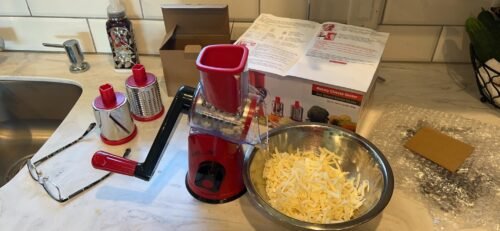 8 valoraciones en Cheese Grater Rotary. Rotary Grater for Kitchen. Kitchen Grater Vegetable Slicer with 3 Drum Blades. Fast Cutting Cheese Shredder for Vegetables and Nuts