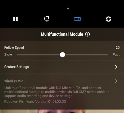 One last thing is the gestures; the product description clearly states that there is a 'double L' hand gesture for framing and it simply does not exist, even with updated firmware. It's not in the app as an option and the module does not respond to that gesture. The only two gestures available are 'start/stop' and 'follow/ unfollow'.