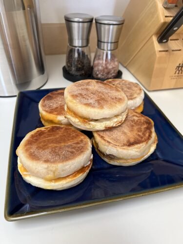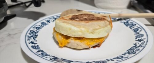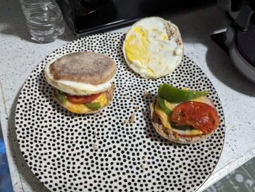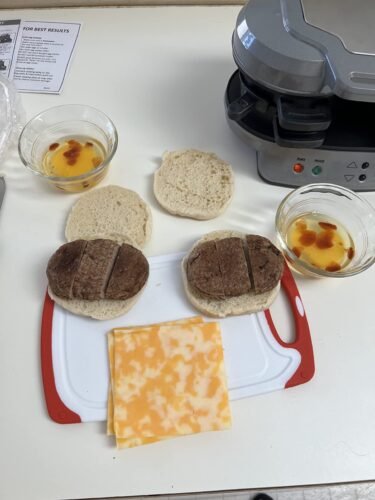 And it can fit quite a few items (English muffin, lunch meat, avocado tomato and cheese). Be sure to follow the instructions and don’t put more than one egg in,… because it puffs up quite a bit.