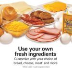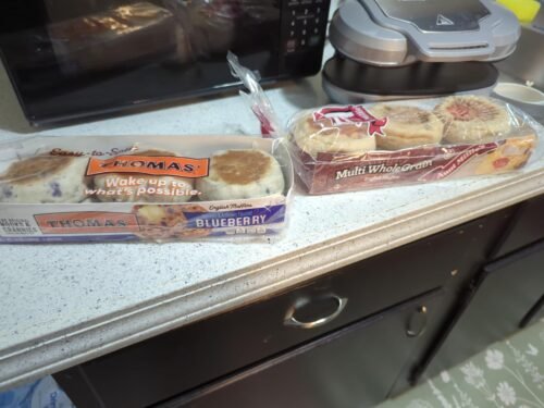 This is perfect for us because my partner likes his sandwich with an Extra Crisp English Muffin, sausage, Colby Jack, and a little hot sauce with his egg. I like mine with a WW English Muffin, Canadian Bacon, Pepper Jack cheese, and egg with hot sauce and spinach.