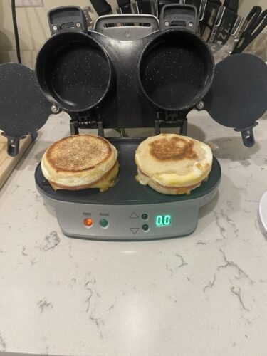 11 reviews for Hamilton Beach Dual Breakfast Sandwich Maker with Timer. Ready in 5 Minutes. Removable Dishwasher Safe PFAS-Free Non-Stick Egg Cooker Ring. Silver (25490MNA)