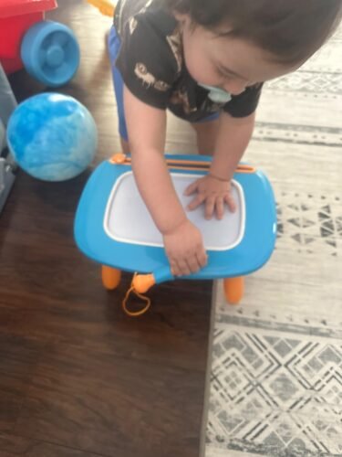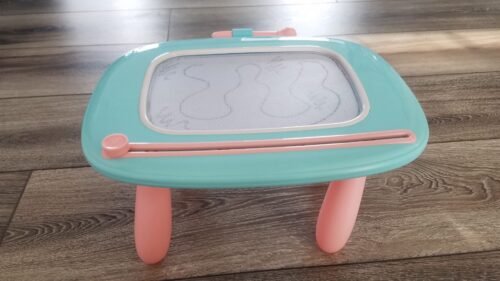 Esta mesa de dibujo a tenido experiencias memorables😅 es bien resistente ya que a servido de silla de carro y de pelota en fin la recomiendo mucho mi bebé se divierte mucho con ella