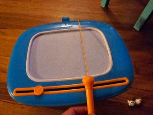 Better without the legs attached! Draws well and has a long string on the pen! Divided into 4 colors so as you draw the colors are revealed in the quadrants. Me and the toddler love it!