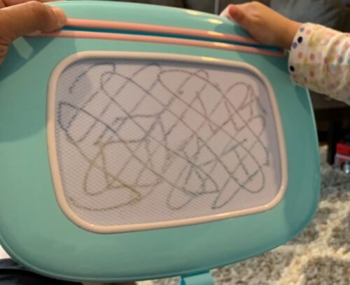 The four quadrants of colors are a nice change other boards; however, the color fades over time. What is drawn basically blends into the background and then disappears within 10-15 minutes. Long enough for the kids, but not good for the parents left holding on to it after they’ve moved on to the next art project.