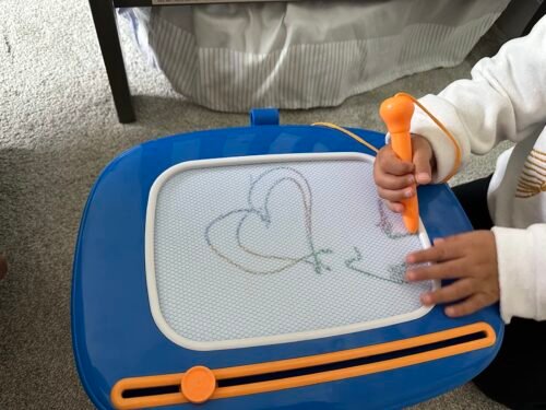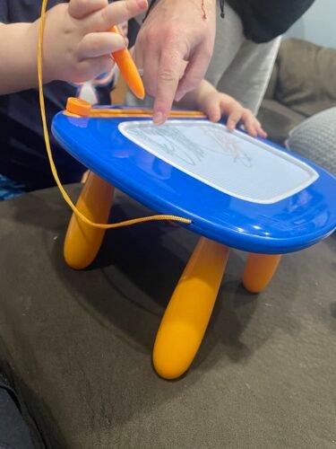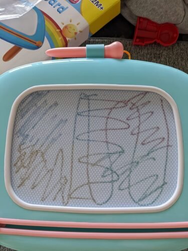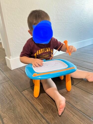 Our 2 year old LOVES this doodle board. I like how we can take the legs off and use it on the go for a travel board or with the legs for use at home. My baby loves how there is different colors in each corner of the board. It is very easy to erase he can do it on his own. It is light weight so I don’t have to worry about him moving it around on his own. Perfect for toddlers or your little artist. Very happy with product!