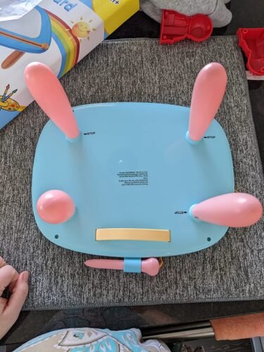 Bought this for my grand who turned 2. It’s the perfect size for her to sit and play. The eraser slide is easy for little hands to do independently. S...More