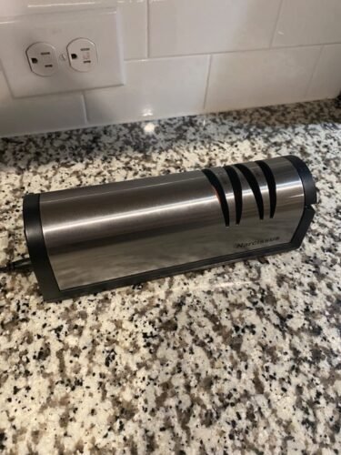 Couple of things I’ve noticed when sharpening knives are the curved top makes it harder to maintain the sharpening angle specifically at the start and end of each knife, the smaller the knife the more wobble you need to account for. My only issue is I’m left handed so I can’t hold the sharpener on top with my right hand. It does have small suction feet which help; so I hold the sharpener at the bottom near the grinder. Flipping the sharpener around and pushing the knives though felt very awkward and isn’t an option.