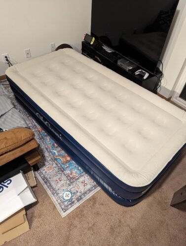We got this for our move in before our mattress came and it saved us from sleeping on the floor. We’re keeping it for when guests sleep over. It has a compartment for the chord which I like and it’s self included inflation. I also bought a queen size sheet set. It did its job and is a great air mattress