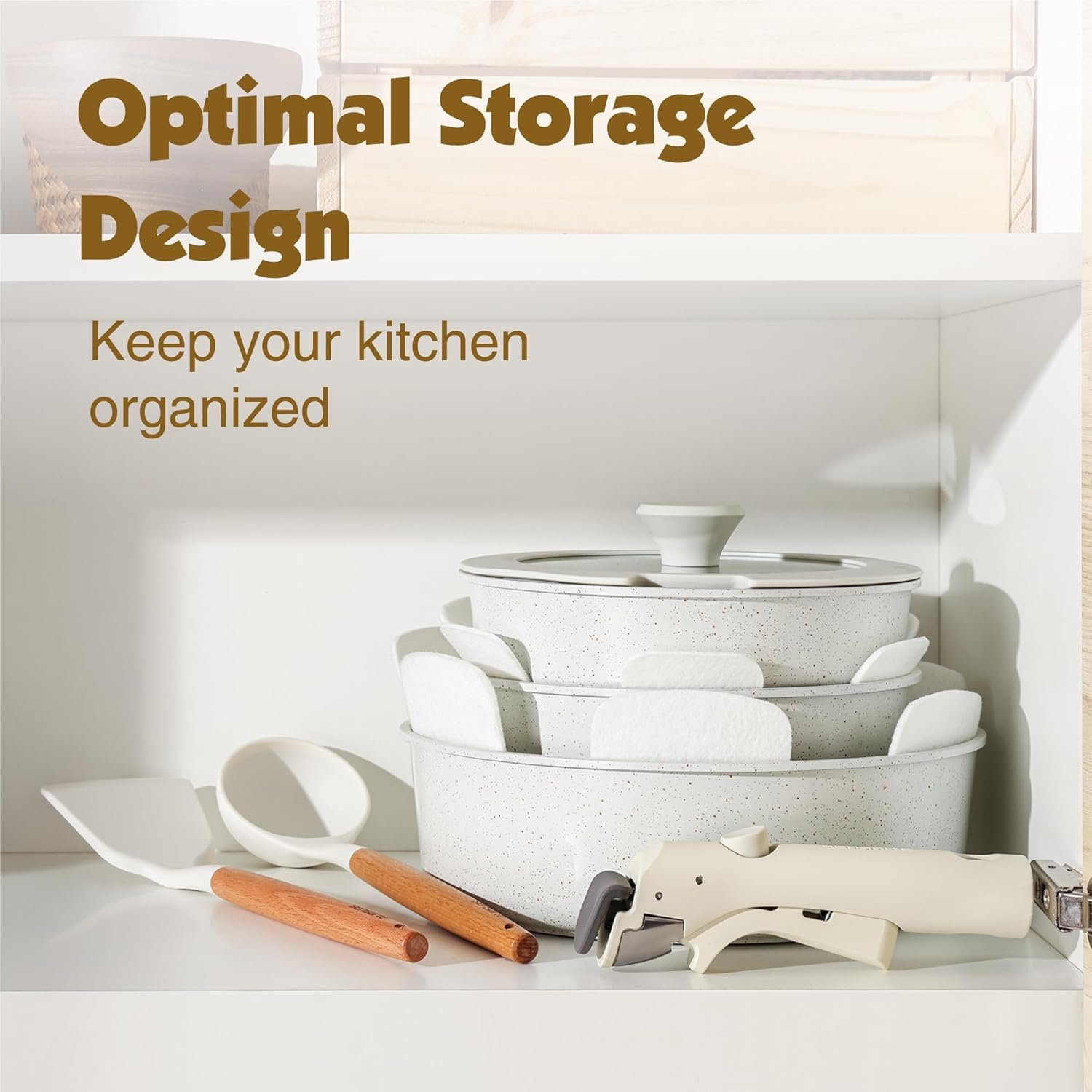 1. SENSARTE 17 Piece Pots and Pans Set. Nonstick Detachable Handle Cookware Set. Induction Kitchen Cookware Set with Removable Handle. Healthy Non Stick for RV. Dishwasher & Oven Safe. PFOA Free (White) photo review
