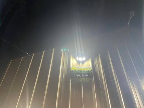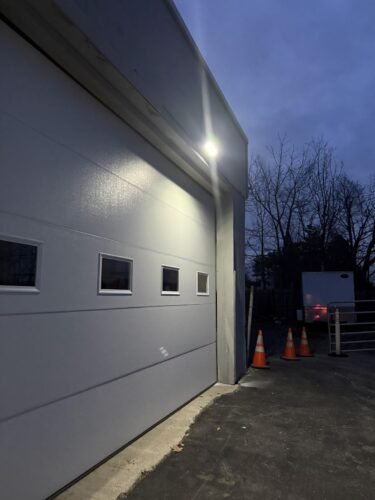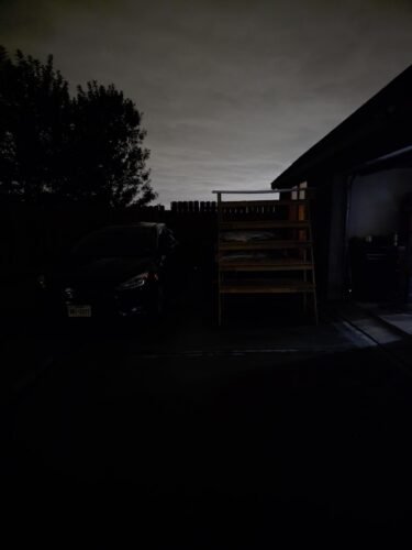 In the first photo, you can see the light mounted at the top of a 10 foot conduit and lighting a pretty good area around it. There are no other lights on to supplement this light.